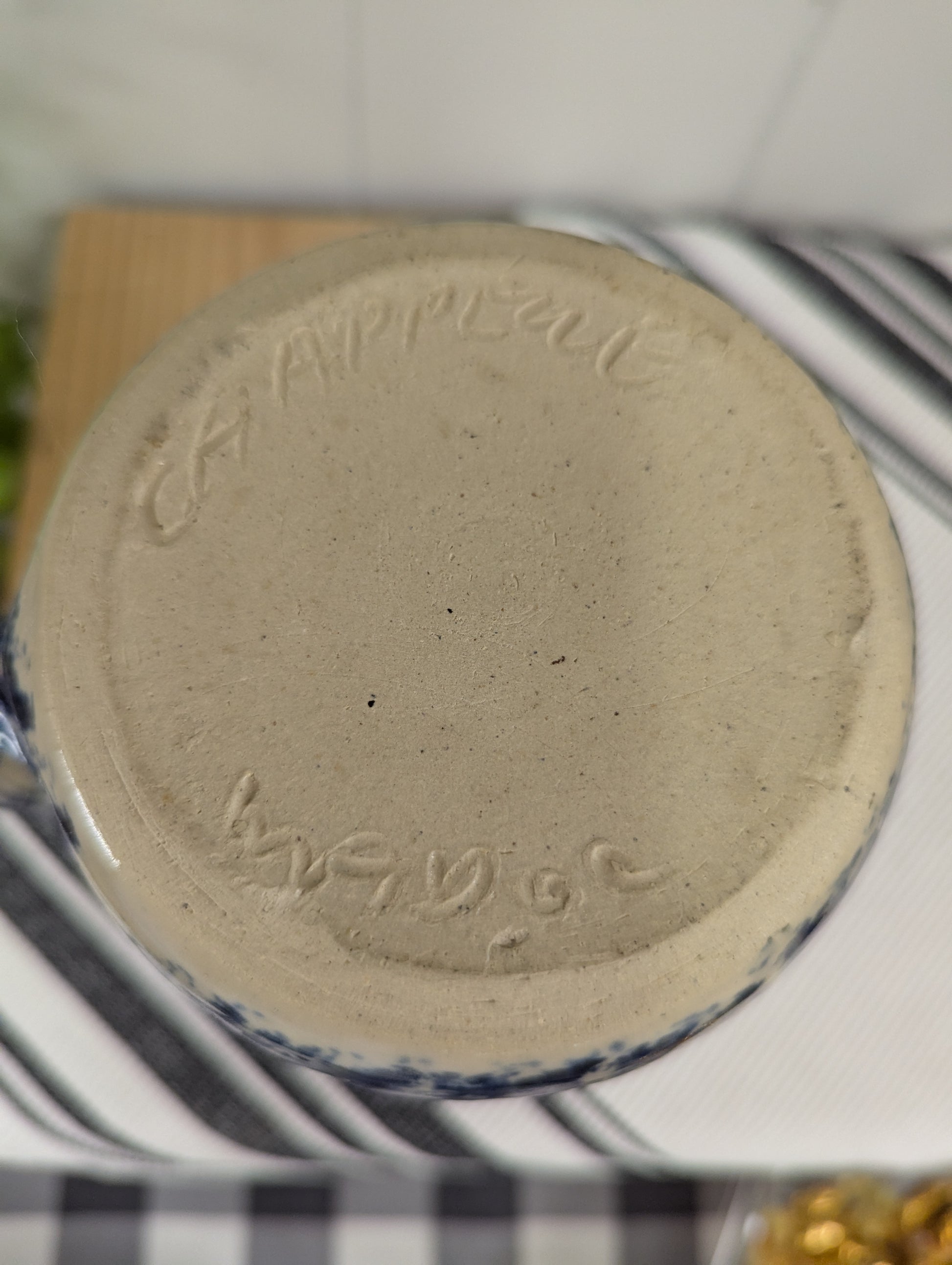 Ready to add a splash of classic farmhouse charm to your kitchen? This delightful blue and white spongeware pitcher is more than just a pretty face – it's practically begging to hold your fresh-squeezed lemonade, a vibrant bouquet of wildflowers, or simply look utterly adorable on your shelf. It's the kind of piece that says, "Yes, I know how to make a house a home, and I also know how to pour a mean glass of iced tea." Artist signed Chappelle