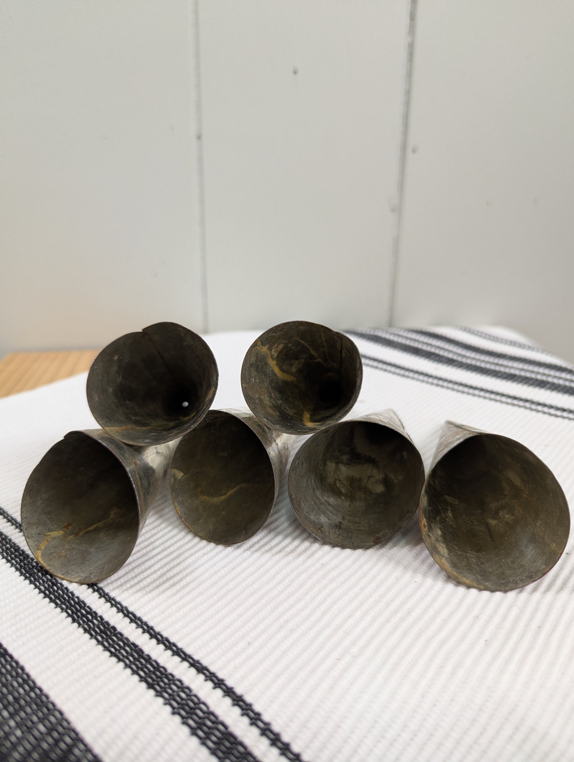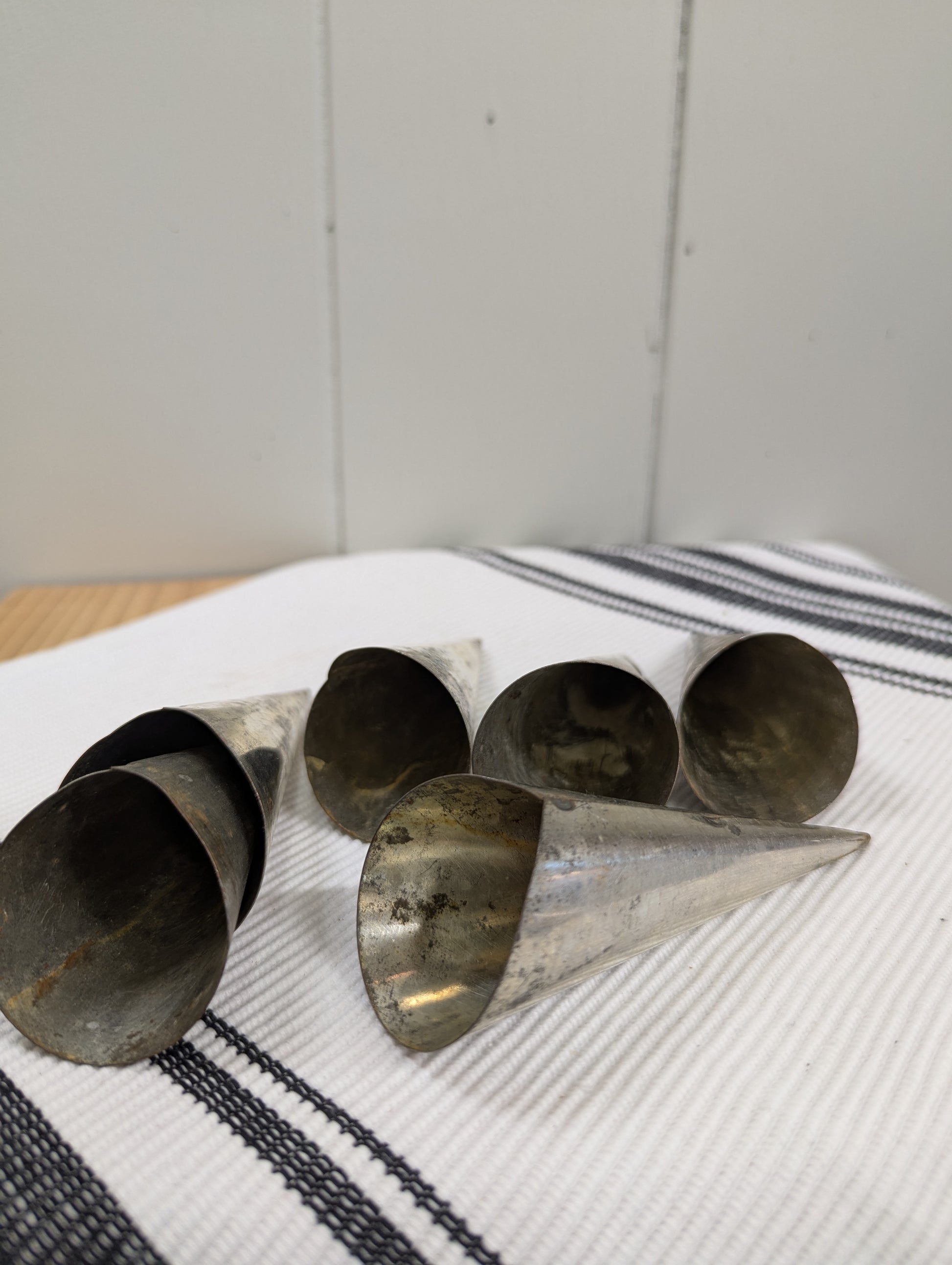 Imagine the batches of cream horns that graced the tables of yesteryear, baked with these very tin moulds. Set of 6 moulds available, to bring back the tradition of delicate pastries .. with a vintage twist!