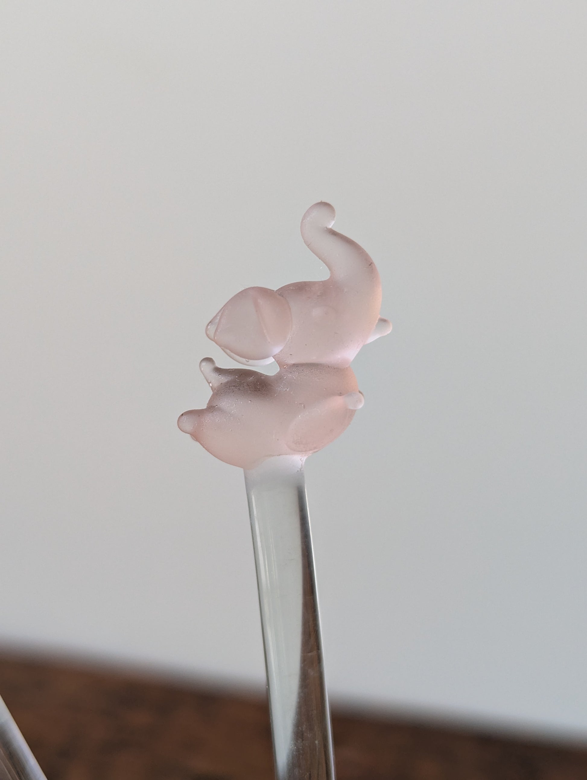 Step back in time to an era of classic cocktails and impeccable style. This set of six vintage glass swizzle sticks, topped with adorable elephants, is a true bar cart essential. They add a touch of playful sophistication to any drink and are a guaranteed conversation starter at your next get-together. With original box.