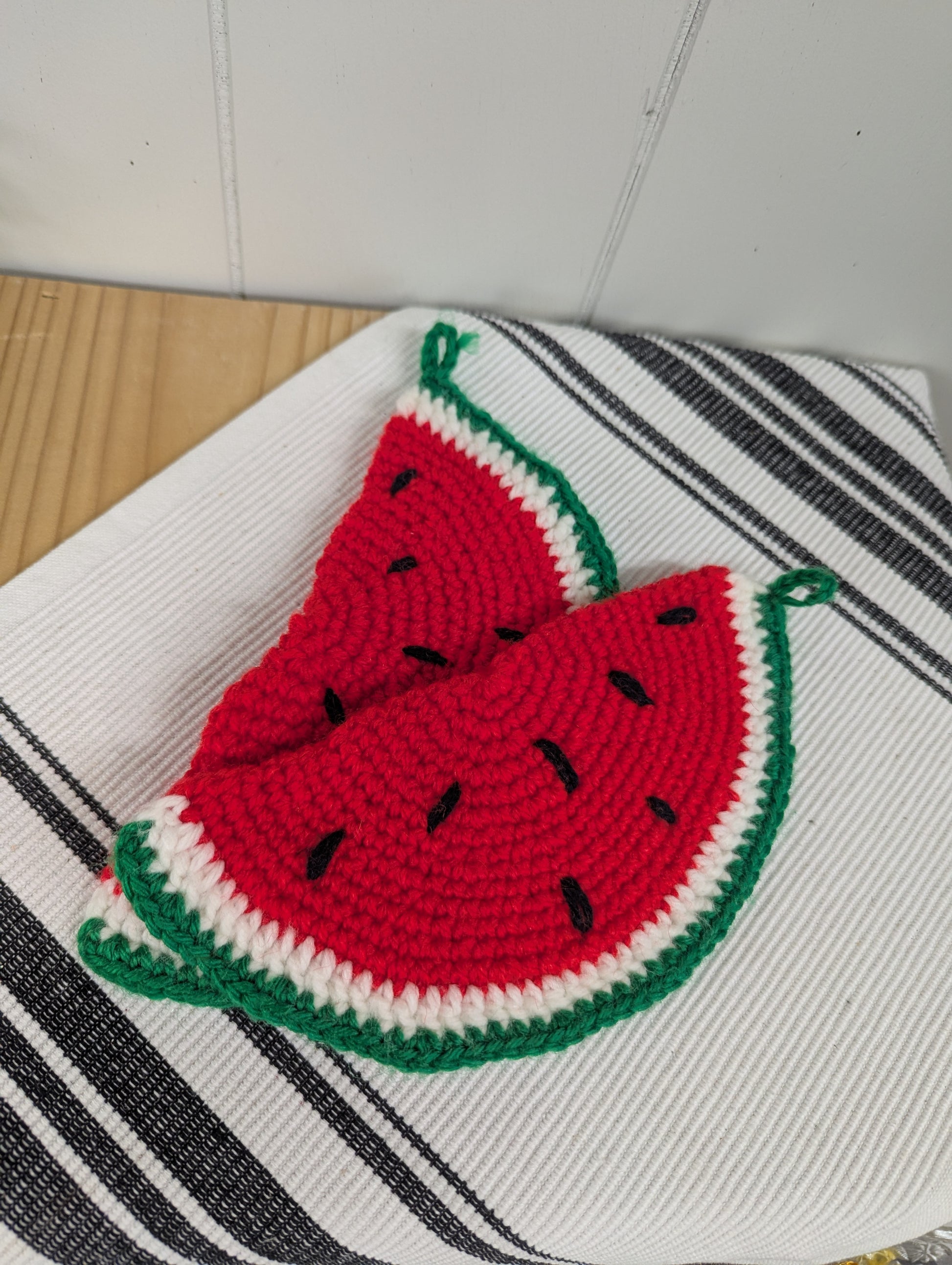 Your oven mitts called, they're jealous! These charming vintage, handmade watermelon potholders are not just practical; they're a little piece of art for your kitchen. Protect your hands and add a pop of cheerful, nostalgic colour!