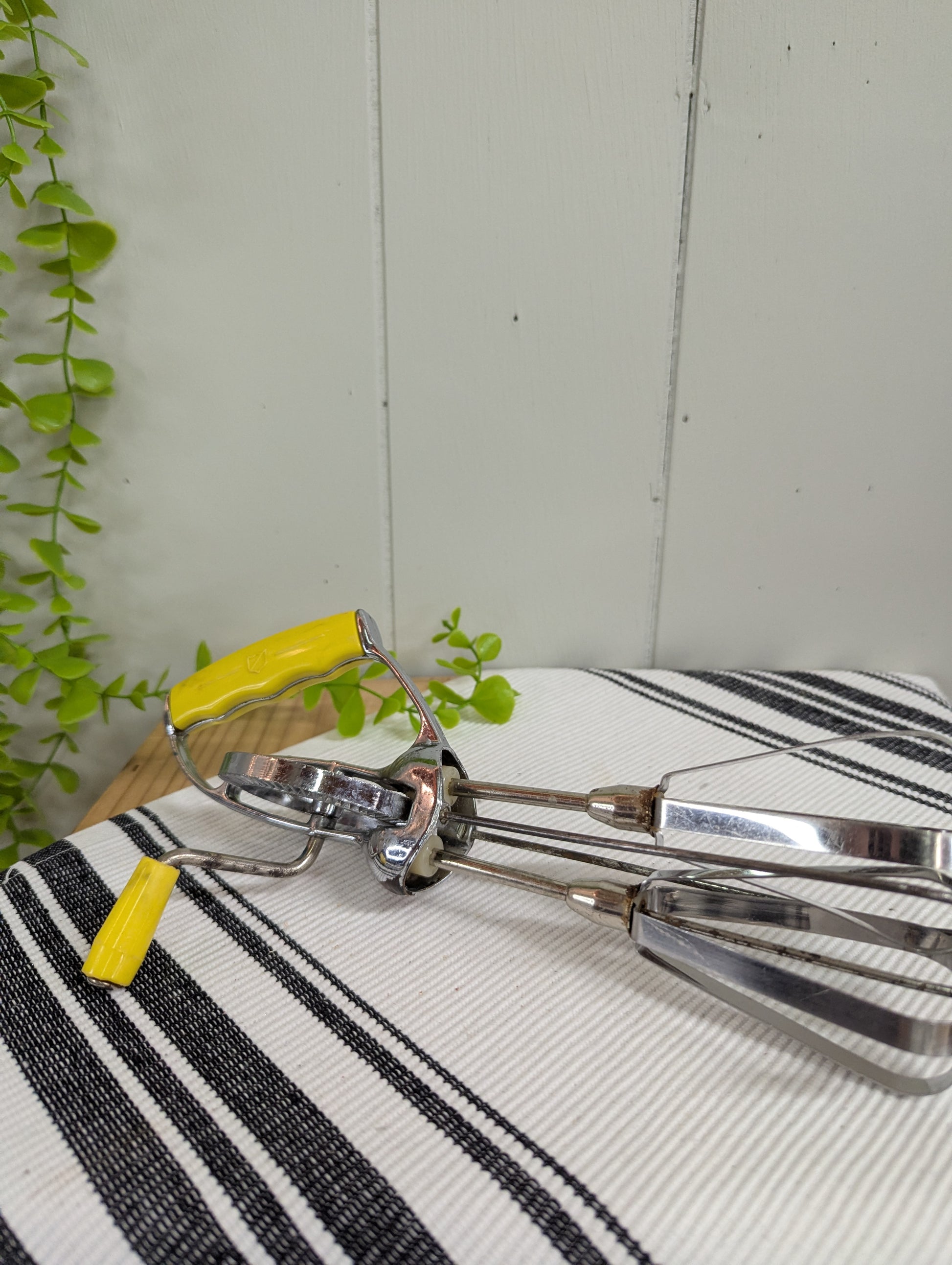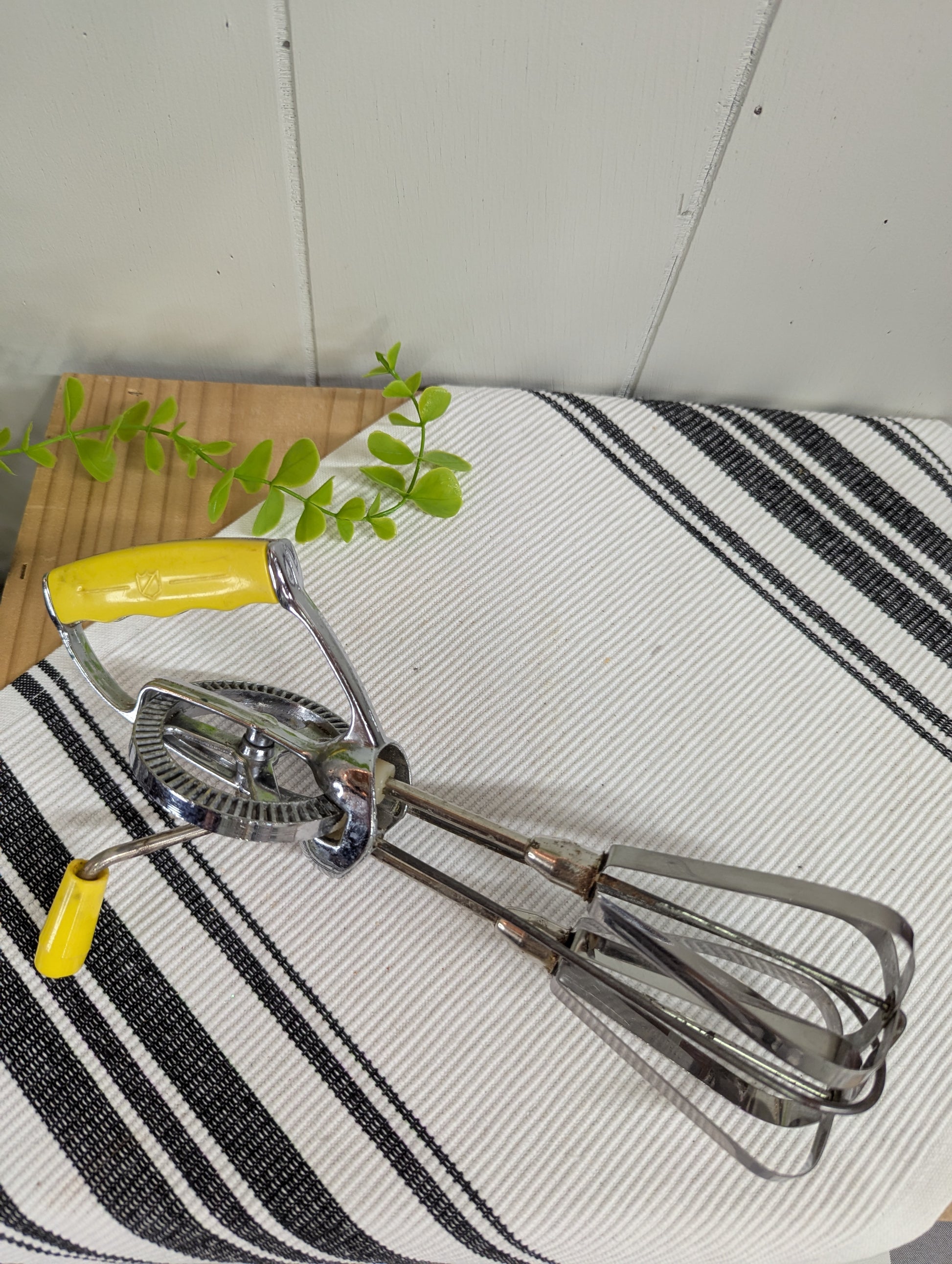 Step back in time and whip up something wonderful. This vintage hand mixer isn't just a kitchen tool, it's a charming piece of history. Perfect for adding a touch of retro flair to your baking and kitchen decor ... and a bonus little arm workout.