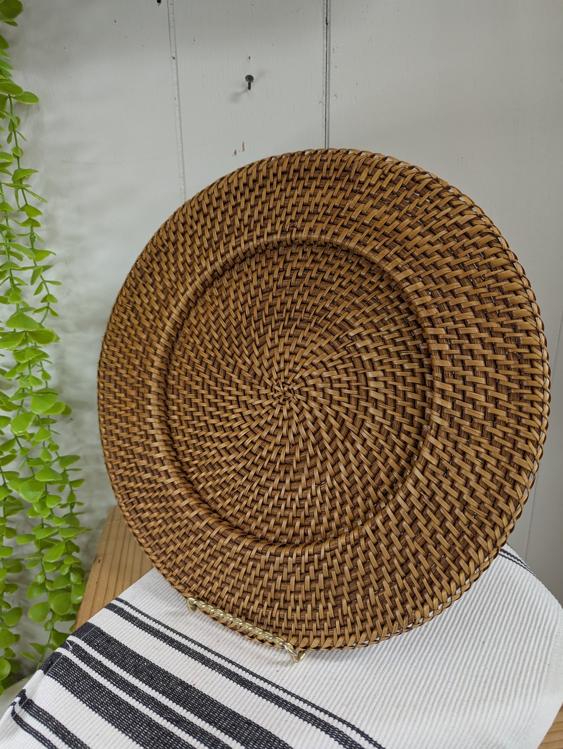 Get ready to layer on the style! This set of four woven charger plates is the perfect way to add a bohemian-chic or modern farmhouse vibe to your dining table. With their natural texture and beautiful pattern, they're the definition of rustic elegance. Your dinner plates have never looked so good!