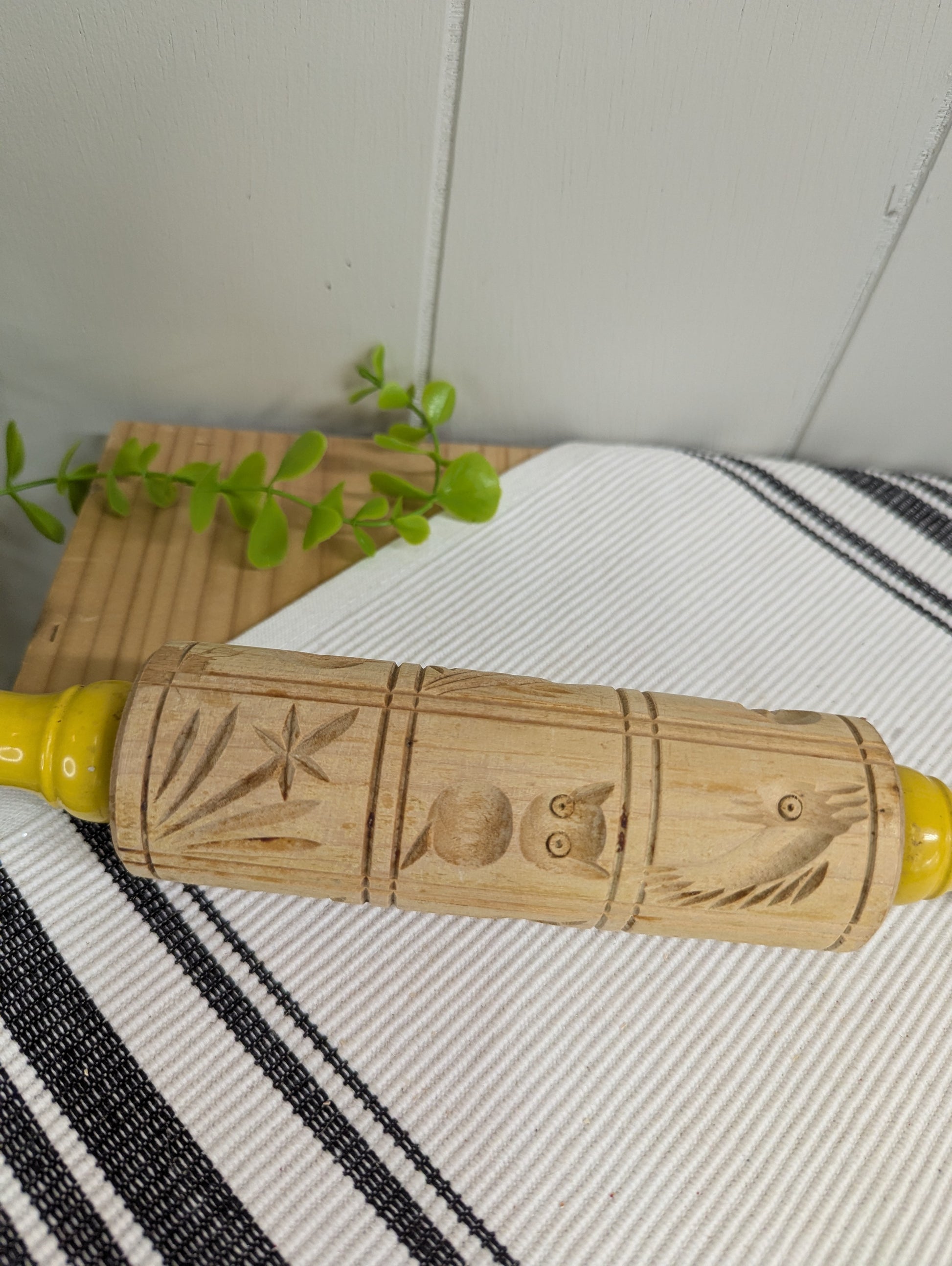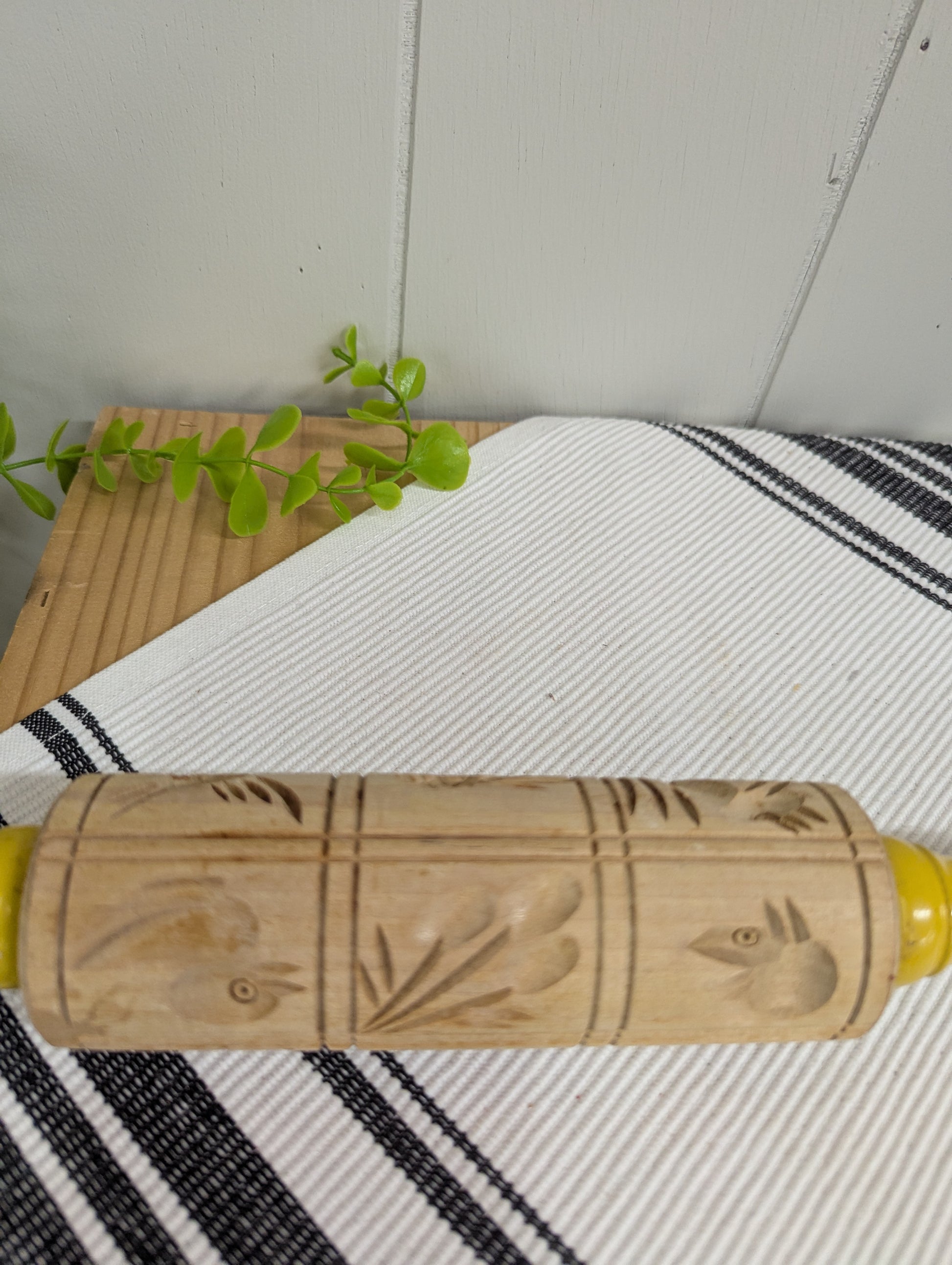 Roll out some edible art! This vintage Springerle rolling pin is ready to imprint your cookies with charmingly detailed designs. Springerle cookies are traditional German biscuits or cookies known for their embossed designs and they are traditionally prepared at Christmas time. Cookies rolled out with this maple rolling pin would be lovely all year long and your treats will be almost too pretty to eat ... almost. Made in Germany.