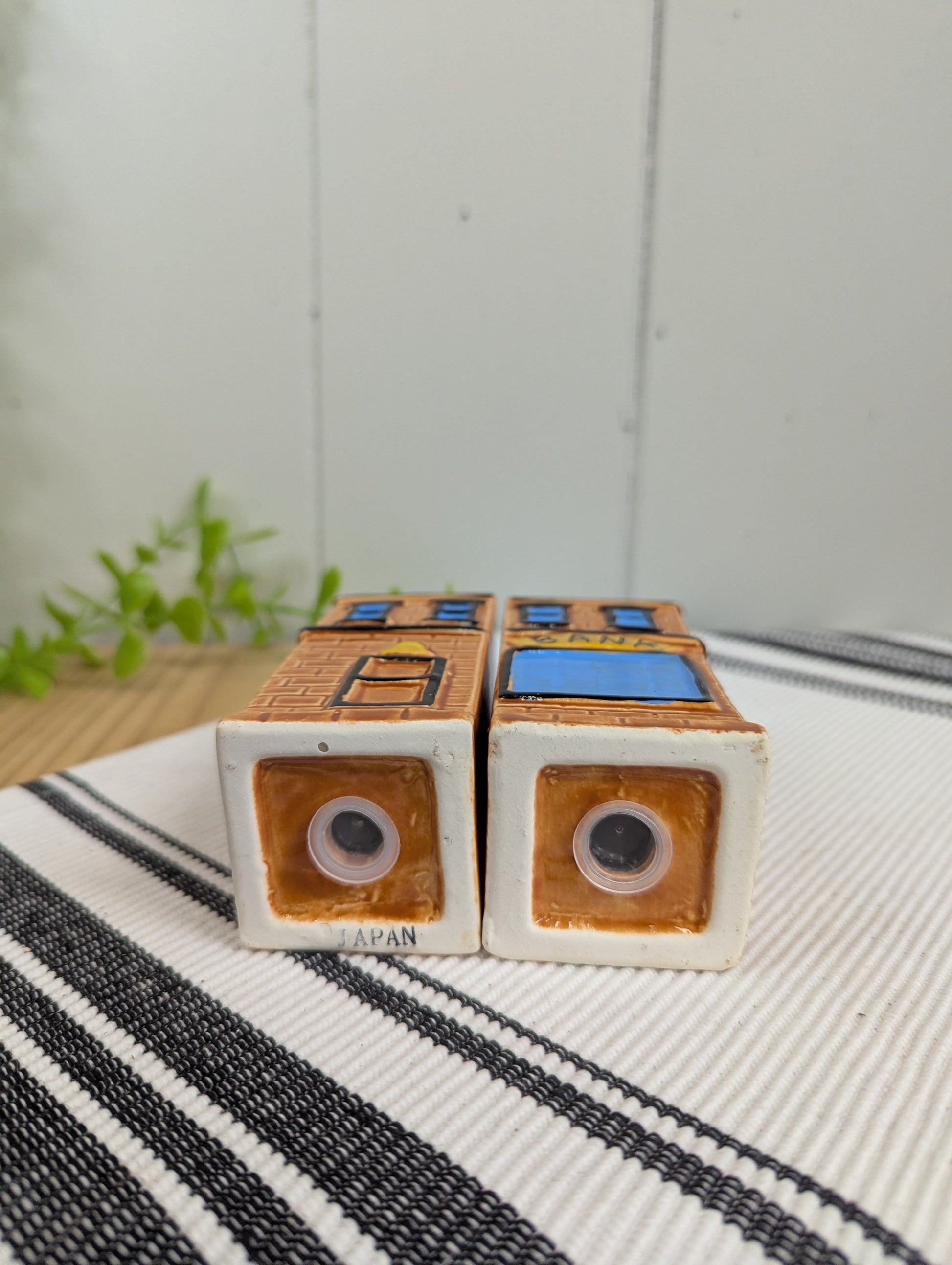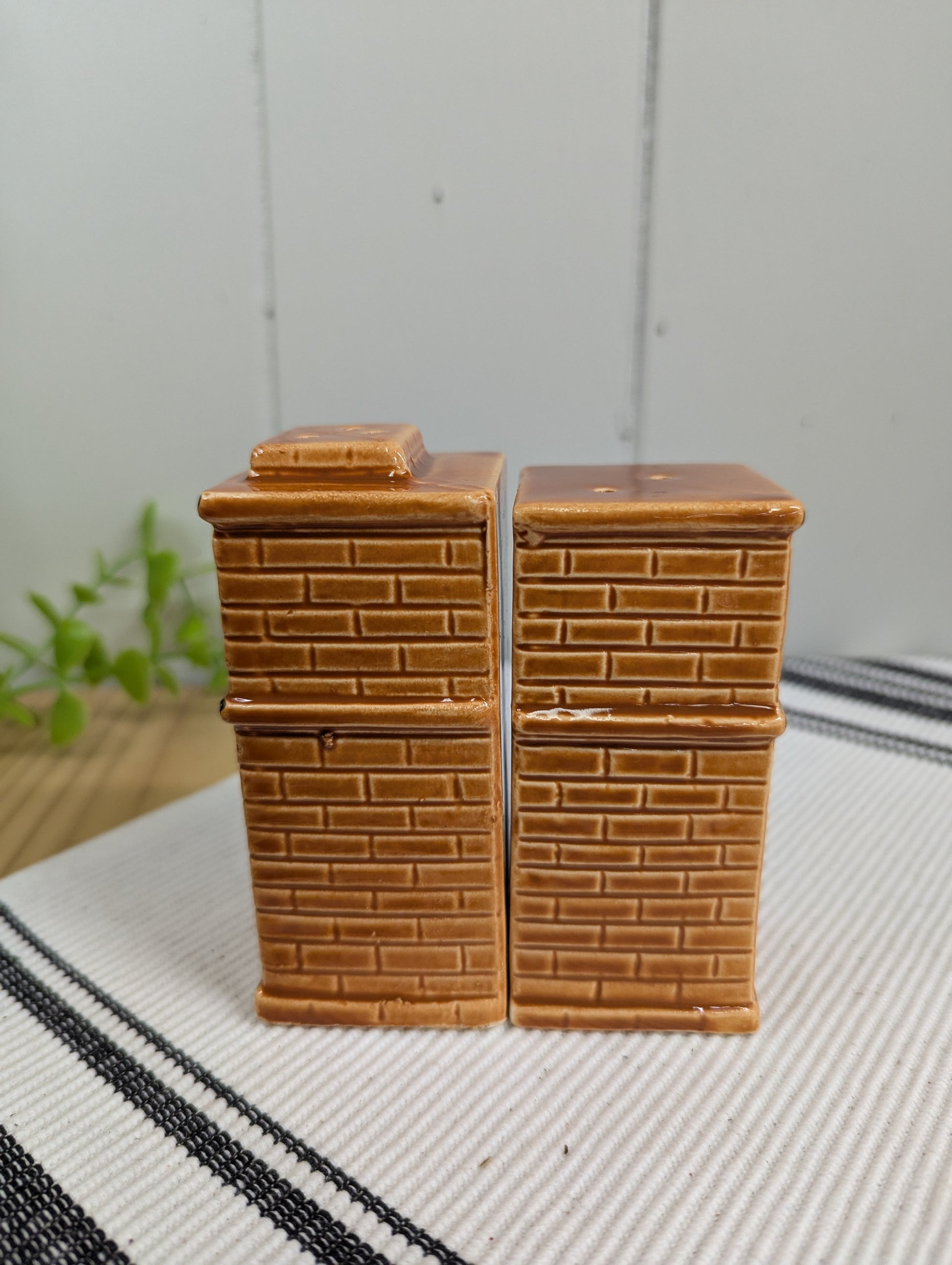 Looking for a little law and order in your kitchen? This unique vintage salt and pepper shaker set, from the 1970's, is shaped like a western bank and police building, making them a fun and quirky addition to any collection. A true conversation starter!